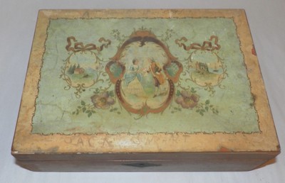 ANTIQUE Lap Desk PAINTED SCENE On Lid STORE YOUR FOUNTAIN PENS!