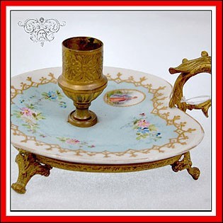 ANTIQUE FRENCH SAMSON PORCELAIN WOMEN SCENE GOLD ORMOLU CANDLE HOLDER CHAMBER