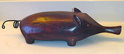 Antique Carved Wood PIG Brass Eyes ~UNUSUAL~