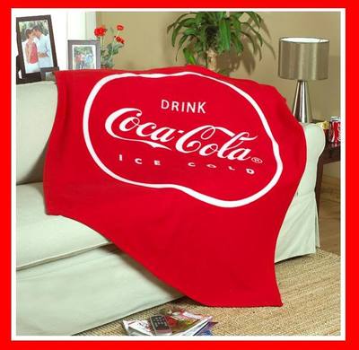 Title (ebay affiliate link): NEW Coke Fleece Throw Blanket Coca-Cola soda logo cap