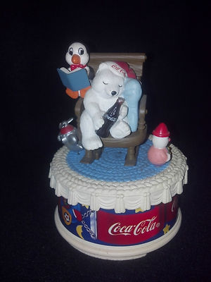 Title (ebay affiliate link): COCA-COLA MUSICAL COLLECTION - POLAR CUB & PENGUIN IN ROCKING CHAIR -1997