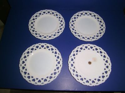 Title (ebay affiliate link): 4 Vtg 1940s Westmoreland "Forget-me-not" 8-1/2 Lace Edge Milk Glass Plates NWT