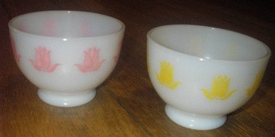 Title (ebay affiliate link): 2 FIRE KING MILK GLASS DESSERT COTTAGE CHEESE BOWL PINK (SALMON) YELLOW