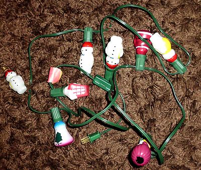 8 Vtg Milk Glass Figural Christmas Light Bulb Set C-7
