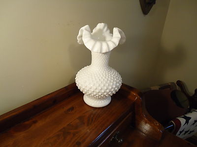 Title (ebay affiliate link): Large 11 inch Rippled Rim Fenton white milk glass Hobnail Vase , nice!!