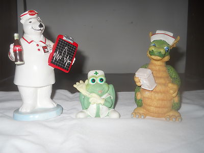 Vintage / Antique Dragon, frog, Coca Cola Nurse Figurine Figurines lot - 1990's