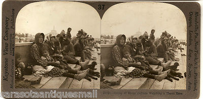 AMERICAN SIOUX INDIANS WATCHING A HORSE RACE. KEYSTONE STEREOVIEW