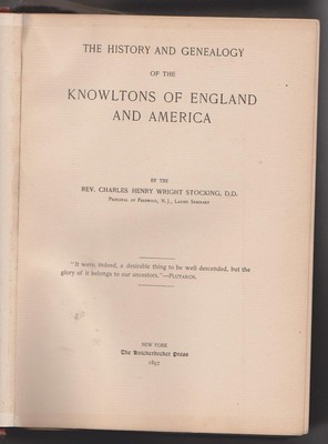 1897 The History and Genealogy of the Knowltons of England And America 597 pages