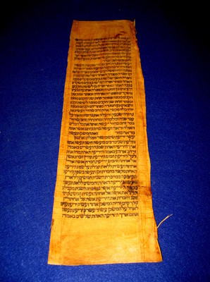 Title (ebay affiliate link): LARGE VELLUM TORAH BIBLE SCROLL FRAGMENT MANUSCRIPT JUDAICA PERSIA 350 YRS