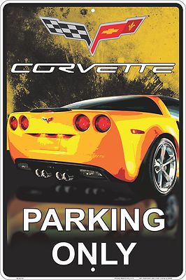 Title (ebay affiliate link): Chevrolet Corvette (yellow) Aluminum Embossed Parking Only Sign