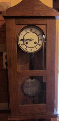 NICE ANTIQUE OAK WALL CLOCK CA 1910