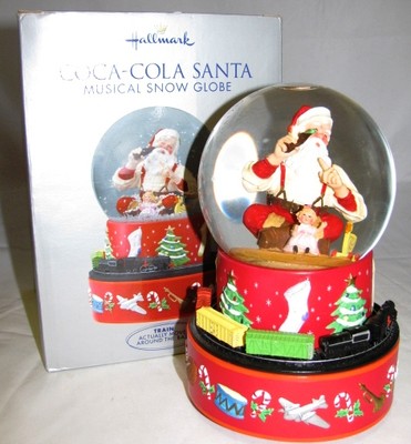 Title (ebay affiliate link): HALLMARK COCA-COLA SANTA MUSICAL SNOW GLOBE TRAIN ACTUALLY MOVES AROUND BASE NEW