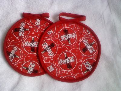 Title (ebay affiliate link): Coca Cola ~ Coke Bubbles Red Fabric Soda Pot Holders~Holder~USA New~Hot Pads~