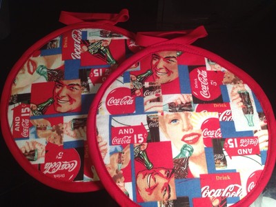 Title (ebay affiliate link): Retro Advertising Coca-Cola Coke Designed Fabric Potholder Set Of 2 USA ~ New