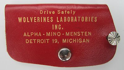 Vintage 1950's Leather Key Case Fob Advertising Wolverines Laboratories Detroit