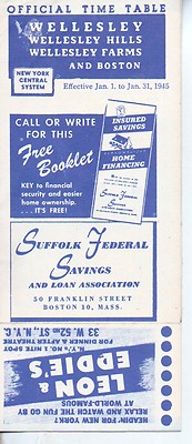 1945 NYCRR NEW YORK CENTRAL WELLESLEY BOSTON RR RAILROAD TIME TABLE