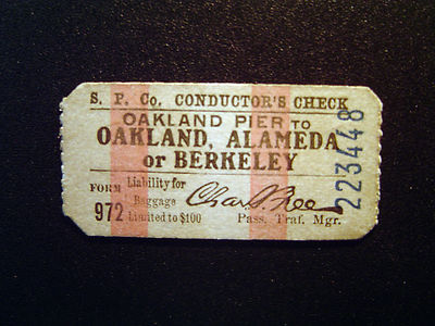 Title (ebay affiliate link): Southern Pacific Oakland Pier to Oakland-Alameda-Berkele Conductor's Check 1940s