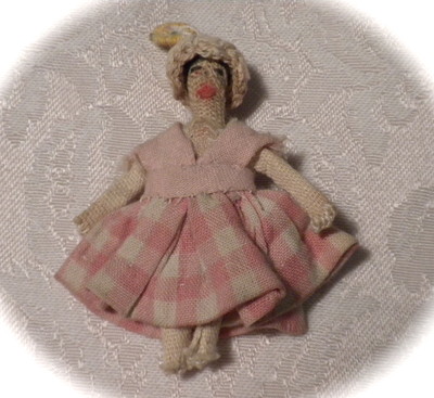 Antique / Vintage ~ TINY HANDMADE DOLL ~ Primitive Folk Art Doll 2 1/2" high