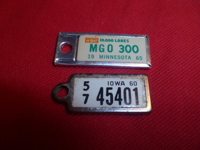 Title (ebay affiliate link): Vintage 1965 Minnesota & 1960 Iowa DAV License Plate Key Chain Tags