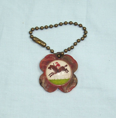 Title (ebay affiliate link): Vintage Keychain with Horse Jumping Four Leaf Clover Bakelite L@@K!