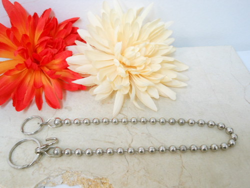 VINTAGE SILVER TONE HEAVY BALL CHAIN WATCH FOB KEYCHAIN STEAMPUNK GRUNGE F9599