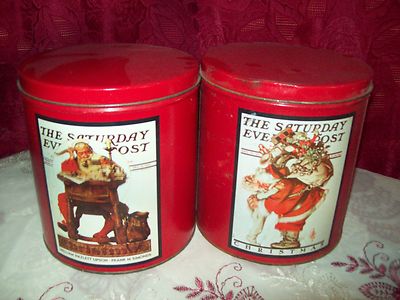 SET OF 2 SATURDAY EVENING POST TINS SANTA CHRISTMAS