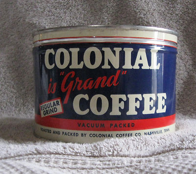 Title (ebay affiliate link): Vintage Colonial is "Grand" Coffee Tin - Colonial Coffee Co.- Nashville, TN