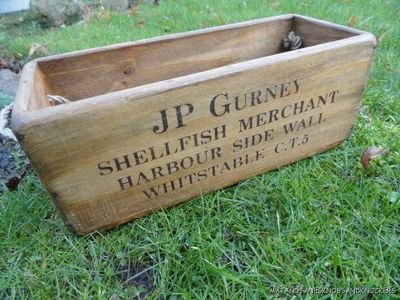 Title (ebay affiliate link): VINTAGE STYLE WOODEN FISHMONGERS OYSTERS CRATE ROPE HANDLE WHITSTABLE KENT BOX