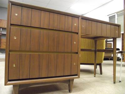 Title (ebay affiliate link): Mid-Century Modern Kroehler Walnut Tangerine & Brass Desk