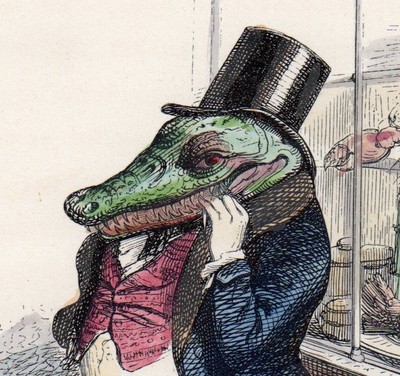 Title (ebay affiliate link): 1842 GRANDVILLE - THE EVIL CROCODILE - Hand Colored Engraving