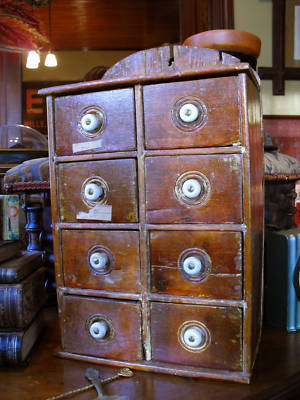 Title (ebay affiliate link): 19TH CENTURY ANTIQUE PRIMITIVE SPICE CABINET 8 DRAWERS