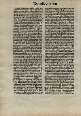 1484 Incunabula Medieval Bible Vellum Leaf 1 CHRONICLES + 3 HandPainted Initial