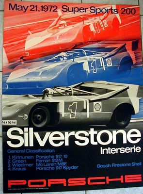 VINTAGE, FACTORY-ISSUE, SILVERSTONE, INTERSERIE, MAY 21, 1972 PORSCHE POSTER