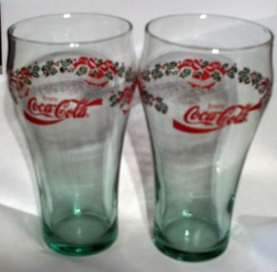Title (ebay affiliate link): 2 COCA COLA COKE Glasses Holly and Bells Enjoy