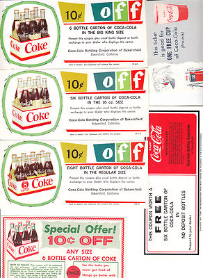 Title (ebay affiliate link): SIX DIFFERENT FREE or CENTS OFF COCA-COLA COUPONS 1950s, 1960s, 1970s