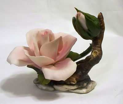 Title (ebay affiliate link): Napoleon CAPODIMONTE Porcelain Rose, Soft Pink. 1 full rose/1 bud, Has Trademark