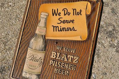 Title (ebay affiliate link): Original 1940's Blatz Pilsner "Do Not Serve Minors" Tavern Sign - Milwaukee, WI