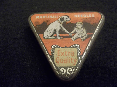 MARSCHALL NIPPER DOG & BABY TRIANGULAR SHAPED GRAMOPHONE RARE NEEDLE TIN GERMANY