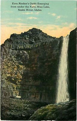 Postcard Ezra Meeker & Waterfall Blue Lake Idaho