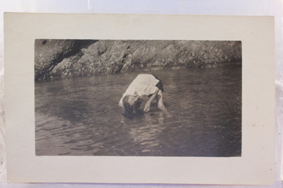 Real Photo Woman Lady Female Lake Washing Her Hair Postcard Old Vintage Card PC