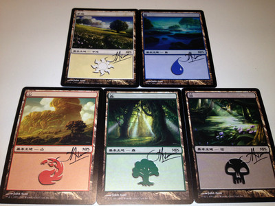 Title (ebay affiliate link): RARE! Japanese MPS Lorwyn SIGNED set of 5 John Avon lands NM MTG NEW MINT