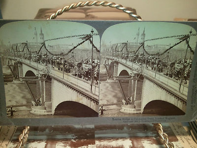 Title (ebay affiliate link): Stereoview King Edward Coronation London Bridge Carriages People Water