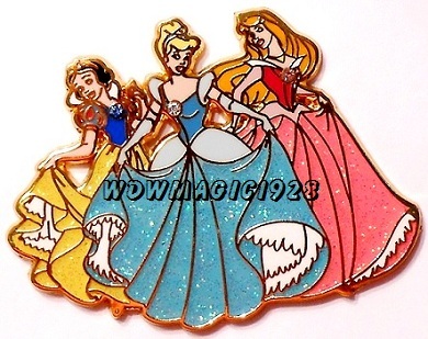 Title (ebay affiliate link): Disney DLRP 3 Princesses Snow White Aurora Cinderella Glitter Dresses Jewels Pin