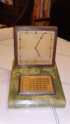 SPAULDING GORHAM GREEN MARBLE DESK CLOCK WITH CALENDER OLD HEAVY CLOCK SWISS 8-D