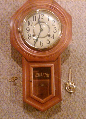 ANTIQUE SOLID OAK OCTAGON " REGULATOR D&A" WALL CLOCK