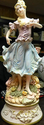 Vintage Capodimonte girl lamp with flowers