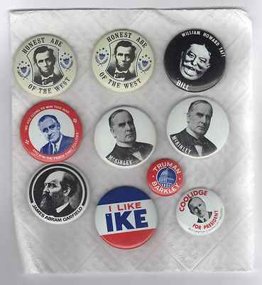 10 Reproduction Pins, Presidential Campaigns, Lincoln, Truman, FDR, Ike, More