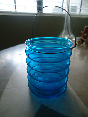 Vintage German Glass Hanging Candle Lantern in RARE Shade of Blue Circa 1900