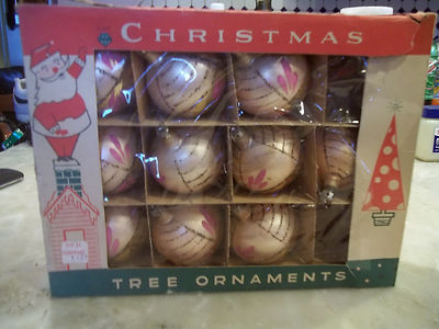 Title (ebay affiliate link): ANTIQUE FANTASIA GLASS TEN CHRISTMAS TREE ORNAMENTS PINK AND GOLD WITH GLITTER