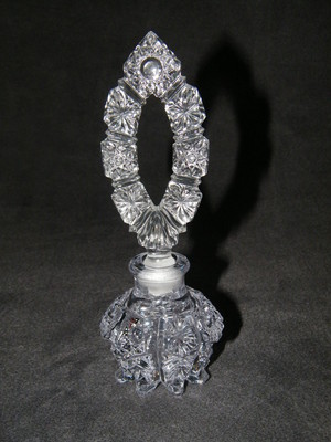 Title (ebay affiliate link): EAPG Perfume Bottle w Stopper Star of David Sunburst Design Pressed Glass 7" n/r